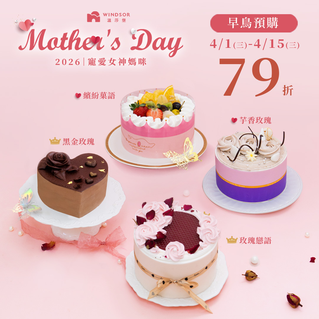 ■ 活動內容:4/1(三)-4/15(三)母親節蛋糕,早鳥預購79折|4/16(四)-5/7(四)母親節蛋糕,預購88折