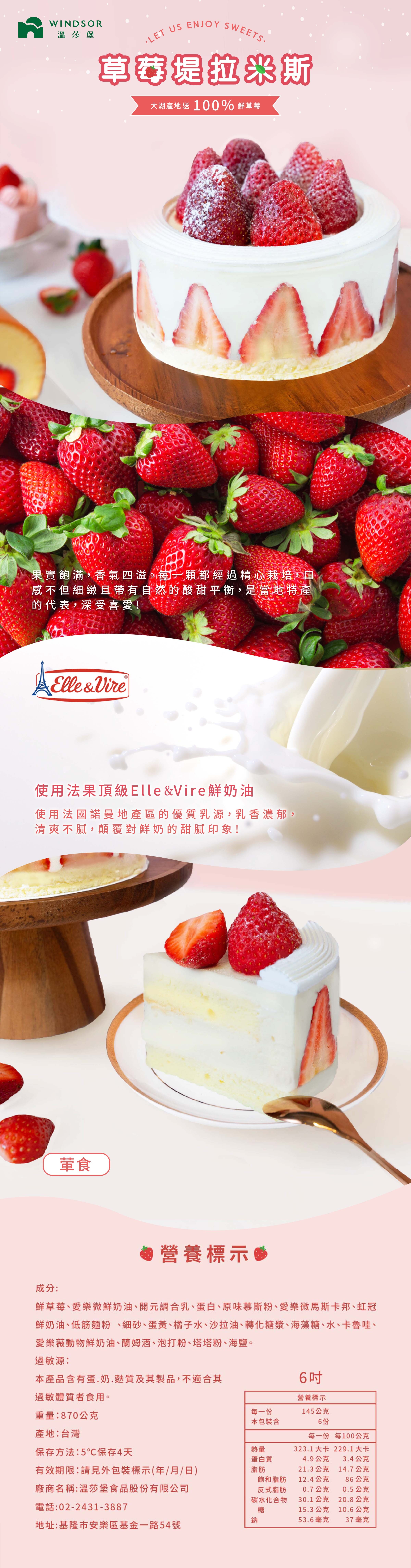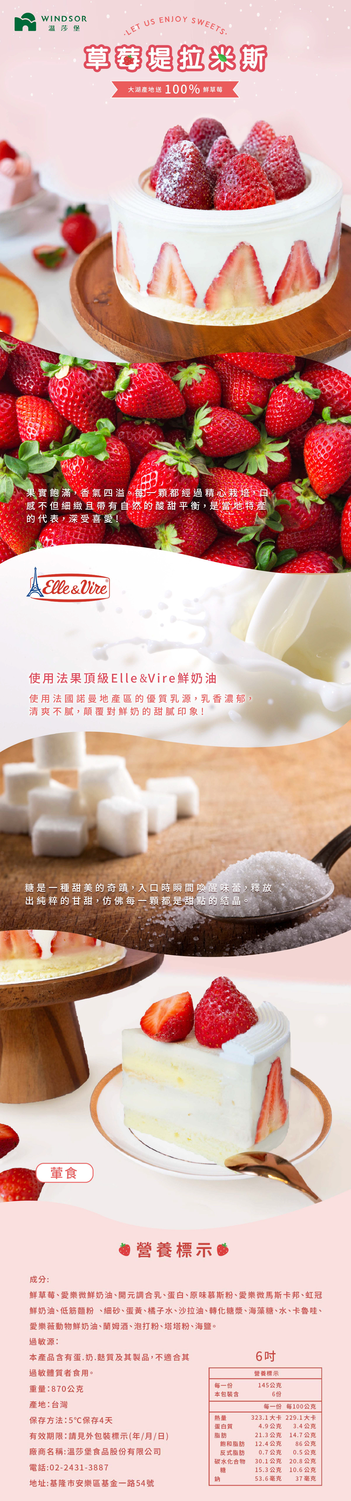 細緻綿密的瑪斯卡彭乳酪與當季粉嫩浪漫的草莓完美結合,入口先感受濃郁奶香與滑順口感,接著是草莓的酸甜香氣,質感與層次變化更豐富!