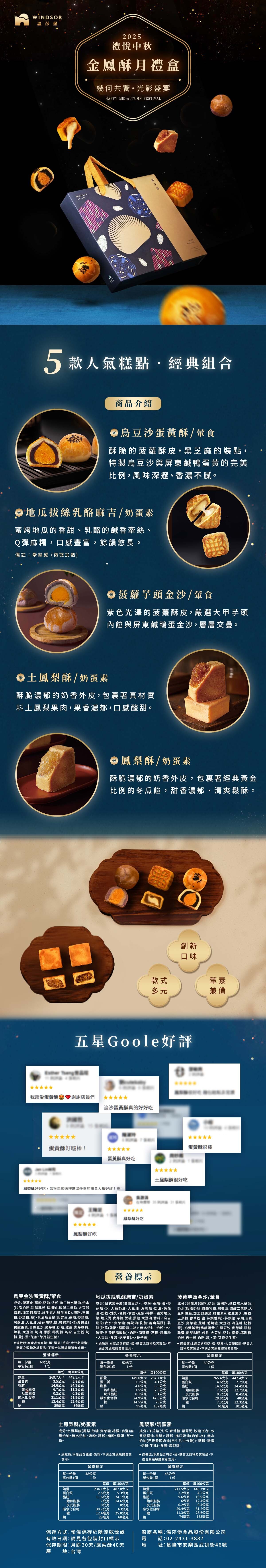 【注意】每款月餅皆有獨立封膜包裝,因外皮酥脆,運送過程中多有些微碎裂風險,請接受此點再行訂購